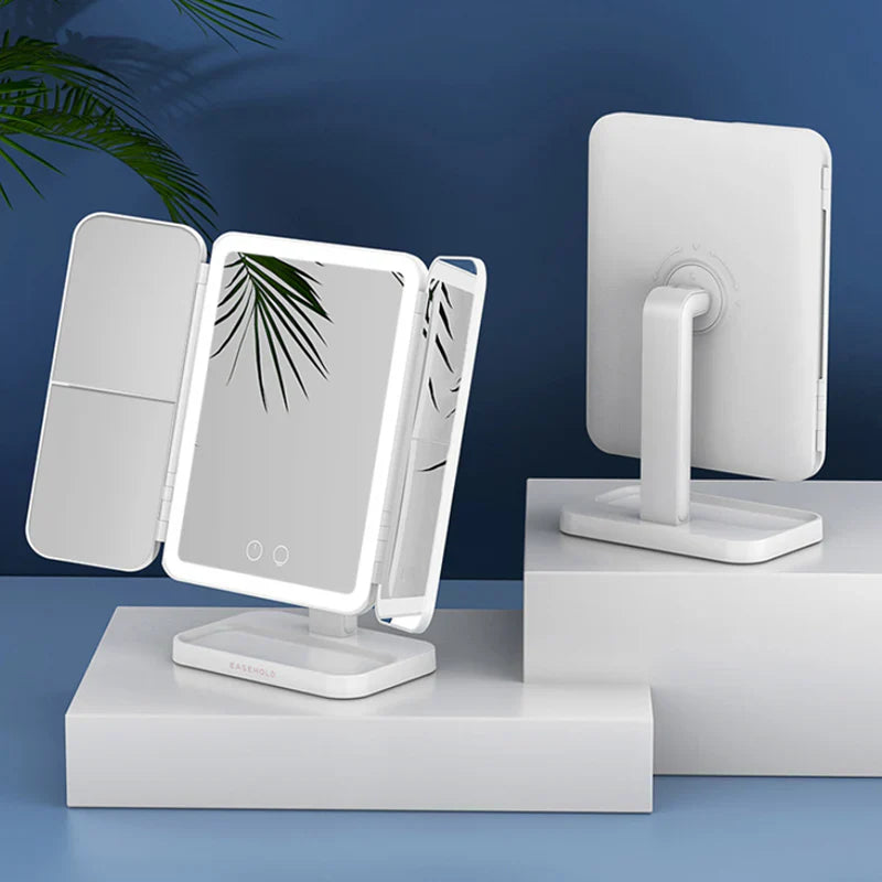 Compacto, ligero y elegante: este espejo LED se adapta perfectamente a cualquier habitación y, gracias al soporte estable y al diseño portátil , puedes usarlo en casa, de viaje o donde lo necesites.